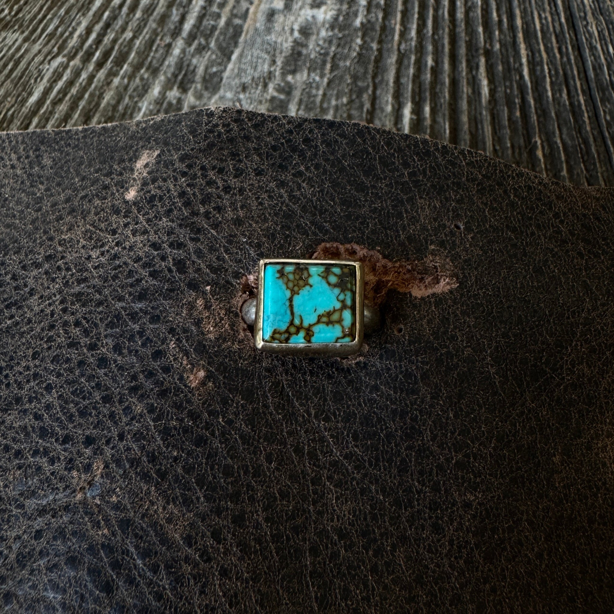 Turquoise set in a 14k solid gold bezel with a sterling silver backplate and band