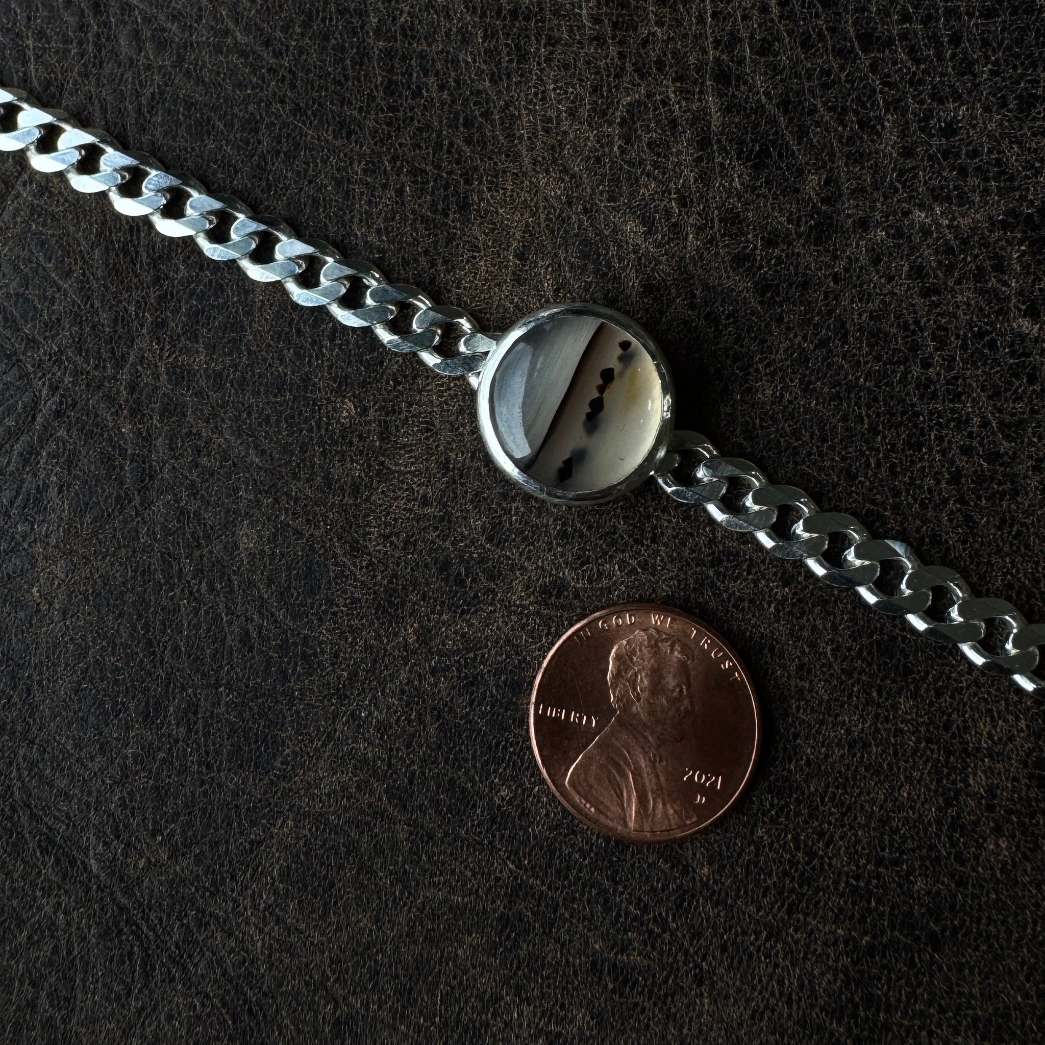 A BEAUTIFUL glowy Montana Agate set in sterling silver on a chunky curb chain